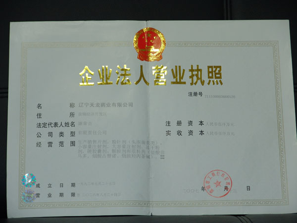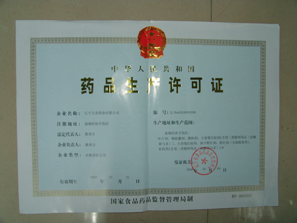 遼寧天龍藥業(yè)有限公司資質(zhì)認(rèn)證